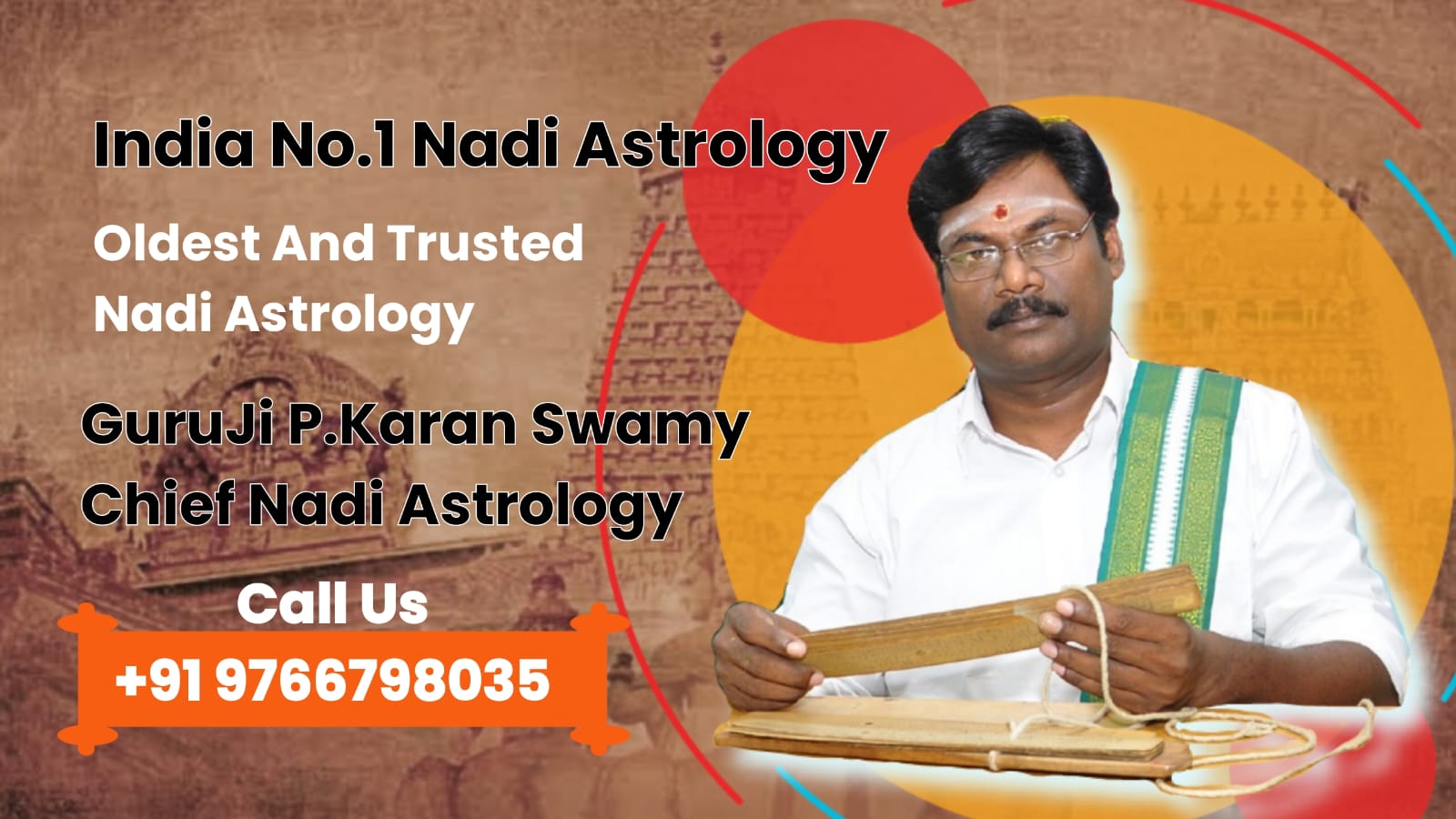 Astrology with palm leaves,can be traced all the way to Vaitheeswaran Koil, a Hindu temple located in India (Tamil) dedicated to the god Shiva. Are you going to be surprised if your past, present and future are accurately predicted today by Maha ShivaNadi Astrology? Hence, he is unique in giving insight into your future. Our Guruji is "Online Real Nadi Astrologer in World Service". Don't miss this opportunity to get clear and reliable predictions from one of the most experienced astrologers in Tamil Nadu, India. Find out who you are and why you live here in this world."